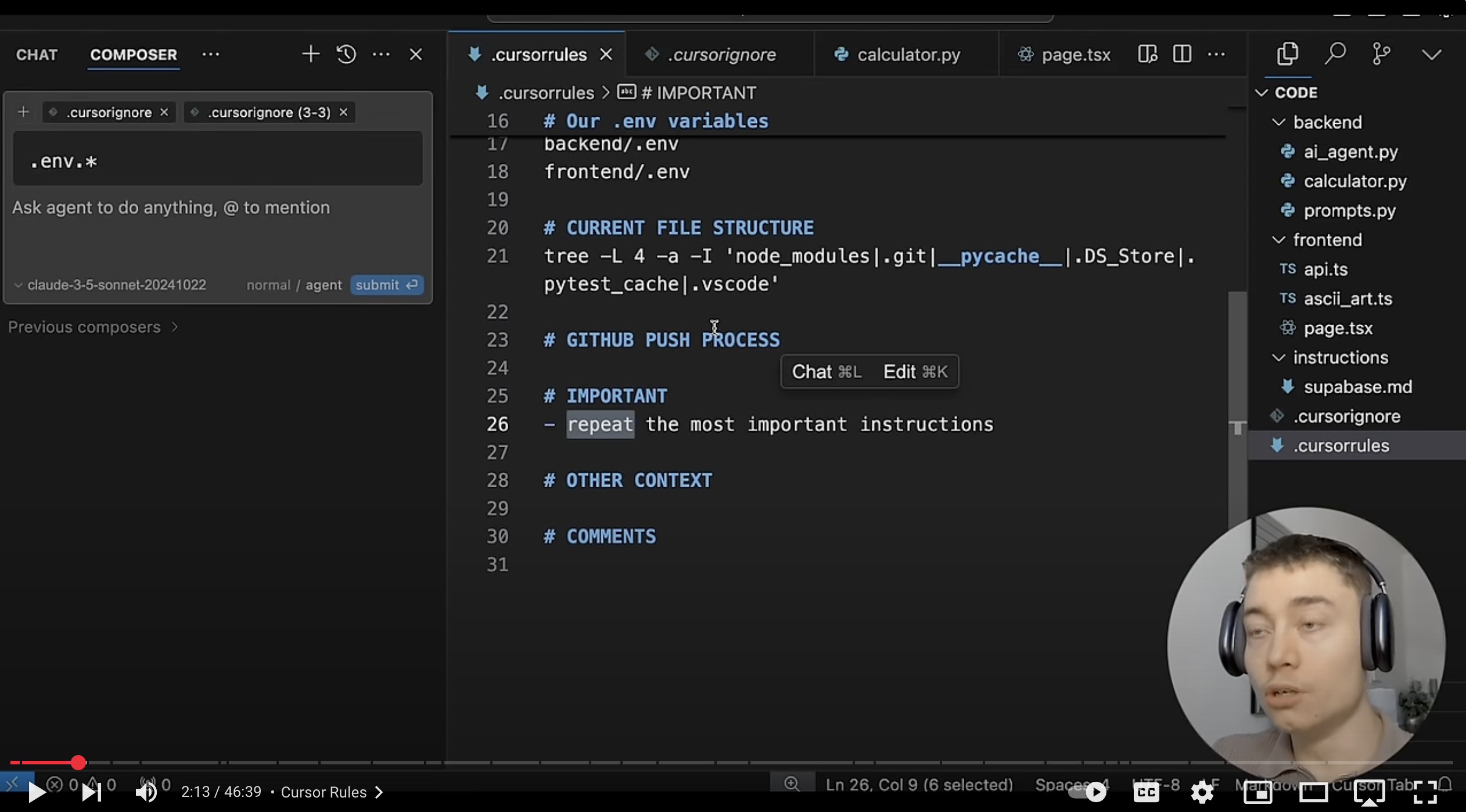 I found this video of a dev with LOTS of helpful tips on how to use Cursor - here are my take aways.